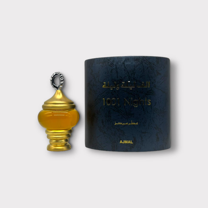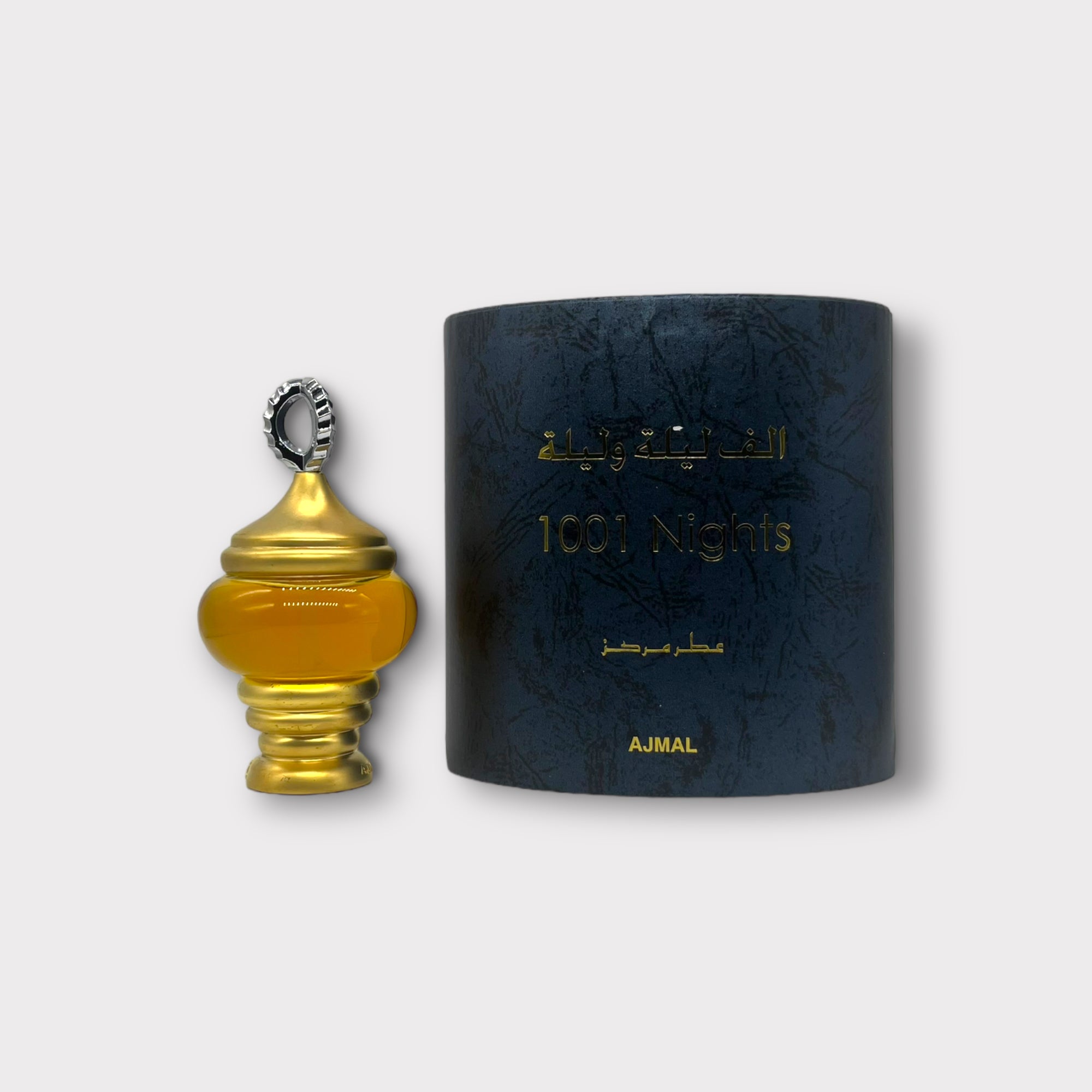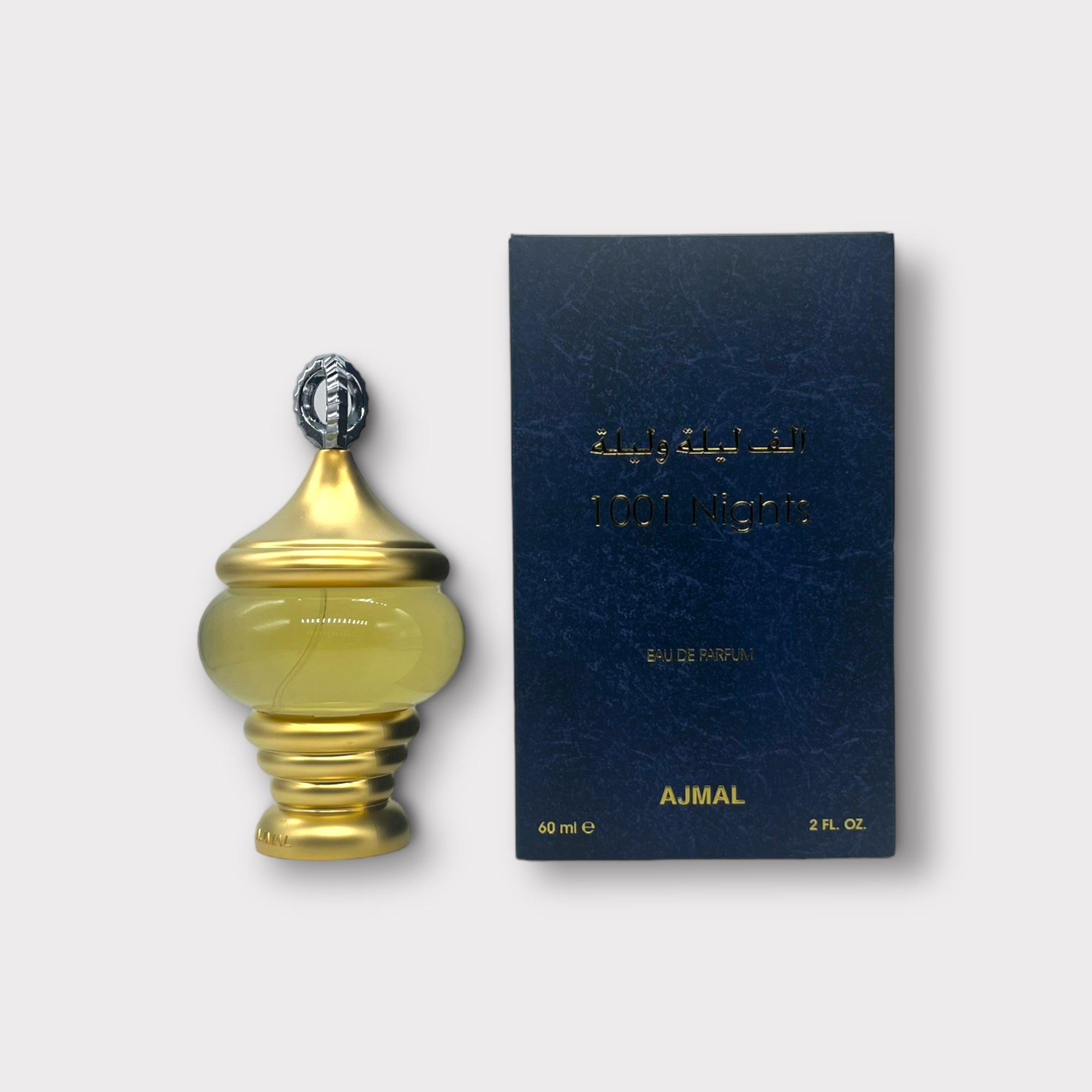 Fusing timeless traditions and modern technology, Ajmal 1001 Nights Eau de Parfum Spray 60ml and Ajmal 1001 Nights Perfume Oil 30ml feature an invigorating, smoky scent that slowly transforms into a delightful floral aroma with an enduring musky-woody base. An ode to '1001 Arabian Nights', the Eau de Parfum is presented in an entrancing bottle that resembles a genie's lamp. The discreet gold casing and silver lid further accentuate the intricate, Arabian-style vessel, encasing 60ml of the captivating scent, evoking the mystery and mystery of the Orient.