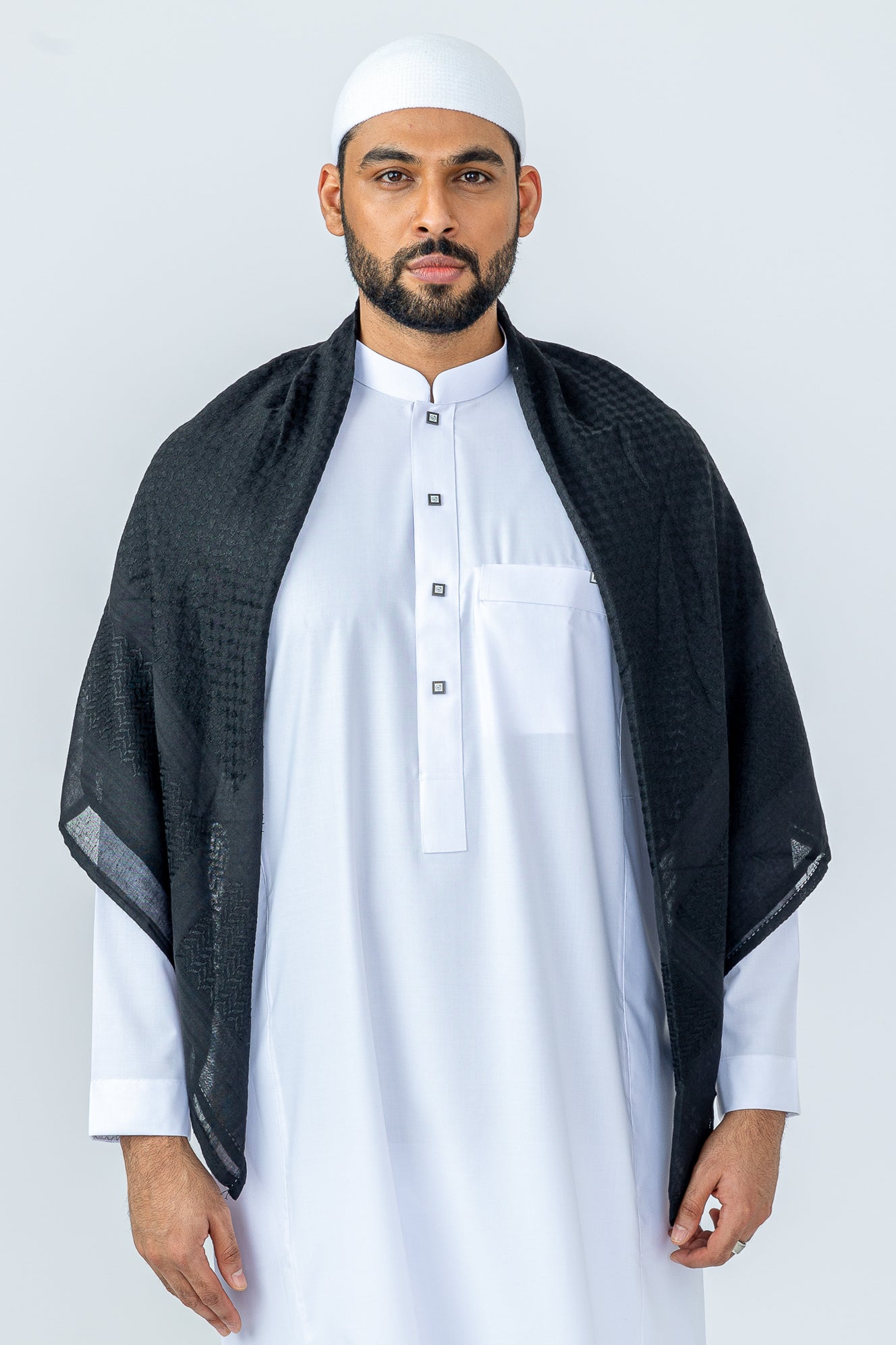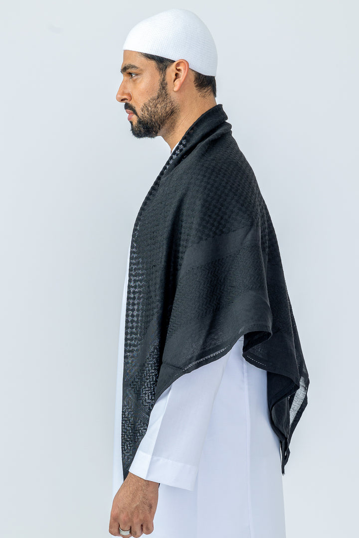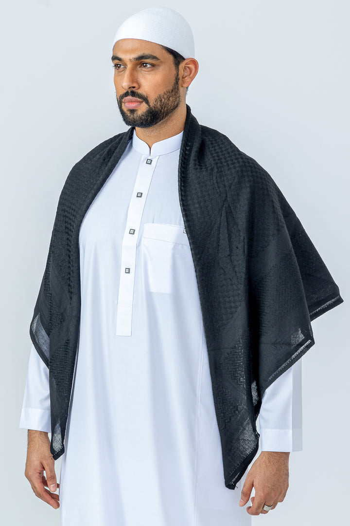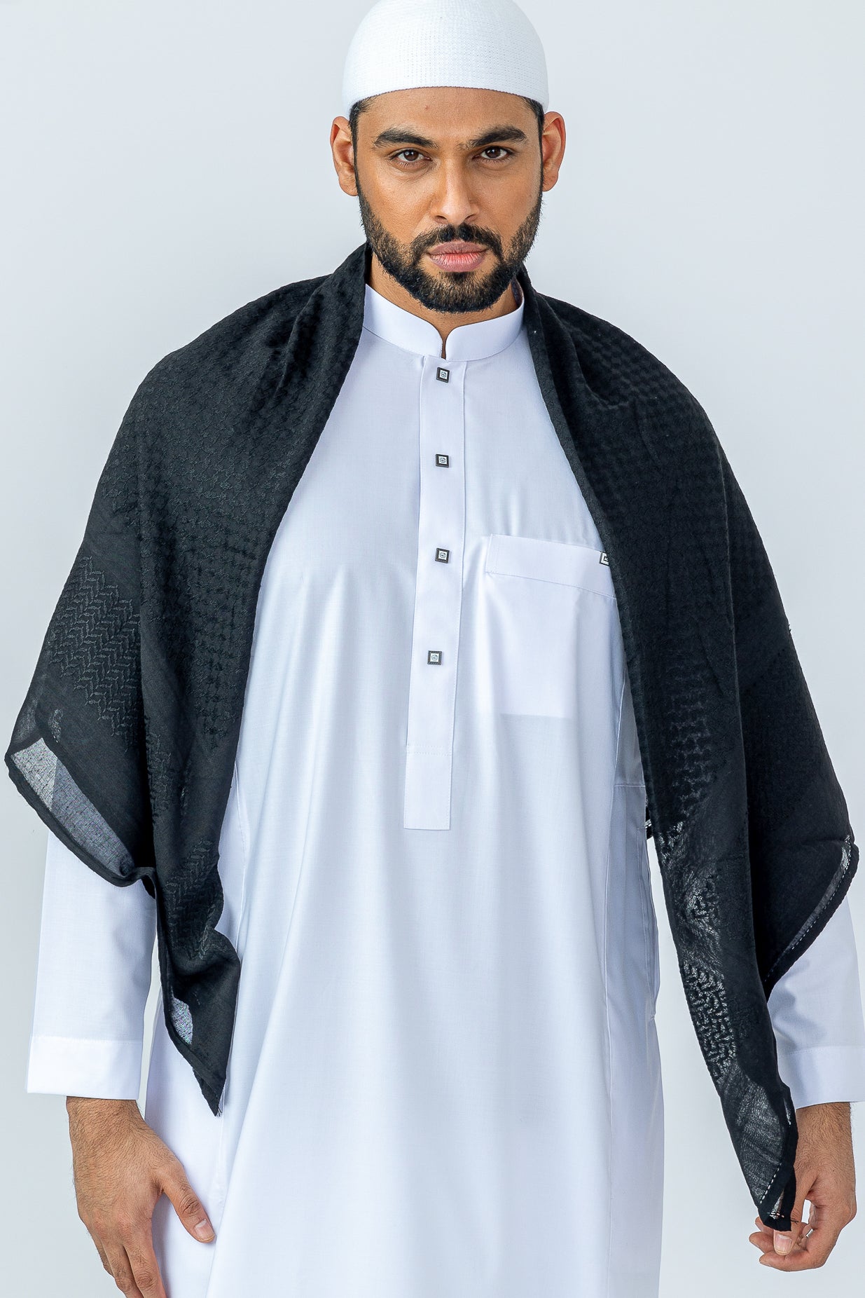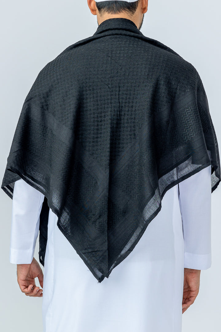 The Shemagh headscarf, also known as a Kufiyya or Ghutrah, is a traditional headdress primarily worn by men. Crafted from lightweight Polyester and an extra-long, square-shaped design, it can be used to protect the head, face and neck from sun, wind, and sand. Highly versatile, it can also be used as a scarf, turban, face covering, or makeshift towel.