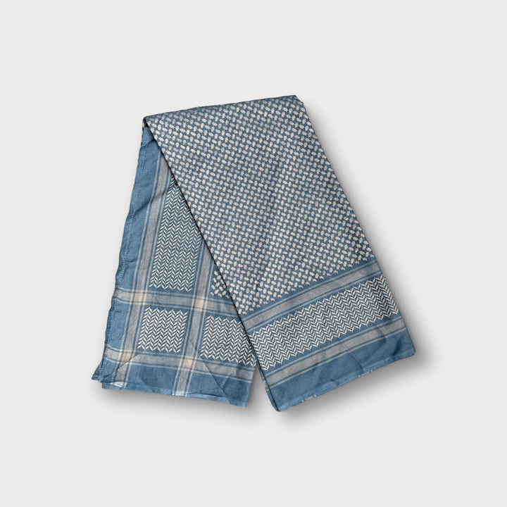 The Shemagh headscarf, also known as a Kufiyya or Ghutrah, is a traditional headdress primarily worn by men. Crafted from lightweight Polyester and an extra-long, square-shaped design, it can be used to protect the head, face and neck from sun, wind, and sand. Highly versatile, it can also be used as a scarf, turban, face covering, or makeshift towel.