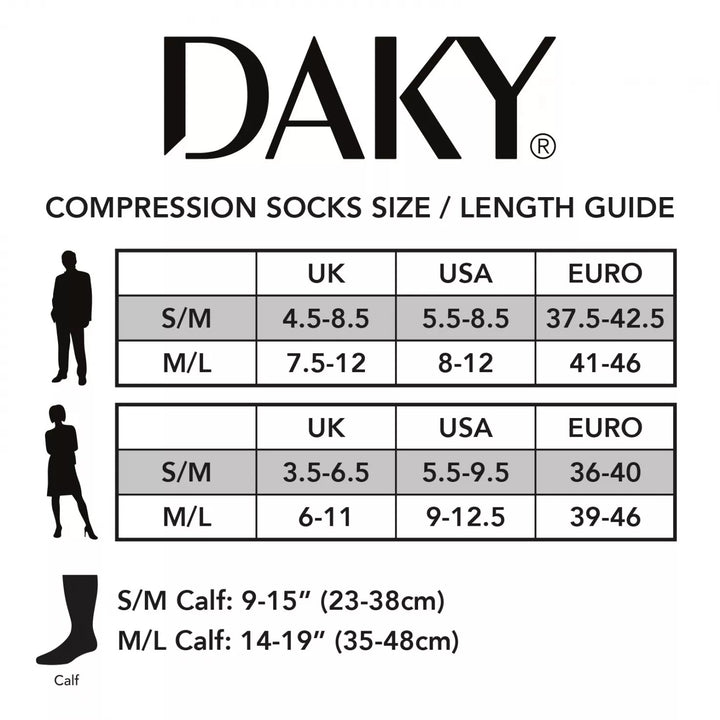 DAKY Compression socks are designed to help relieve fatigue and swelling in your legs by promoting blood circulation, preventing thrombosis and varicose veins.