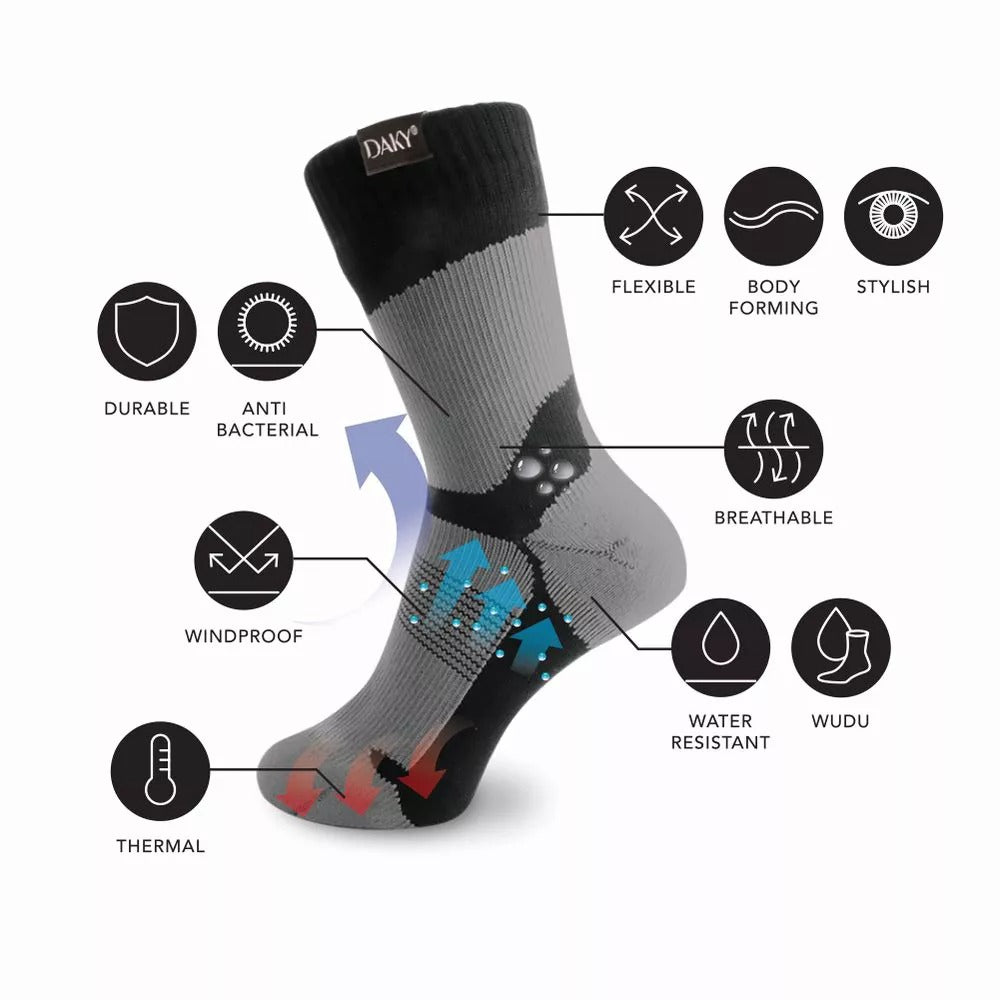 These socks are 100% Wudu Compliant, Waterproof, Breathable with high performance lightweight membrane.