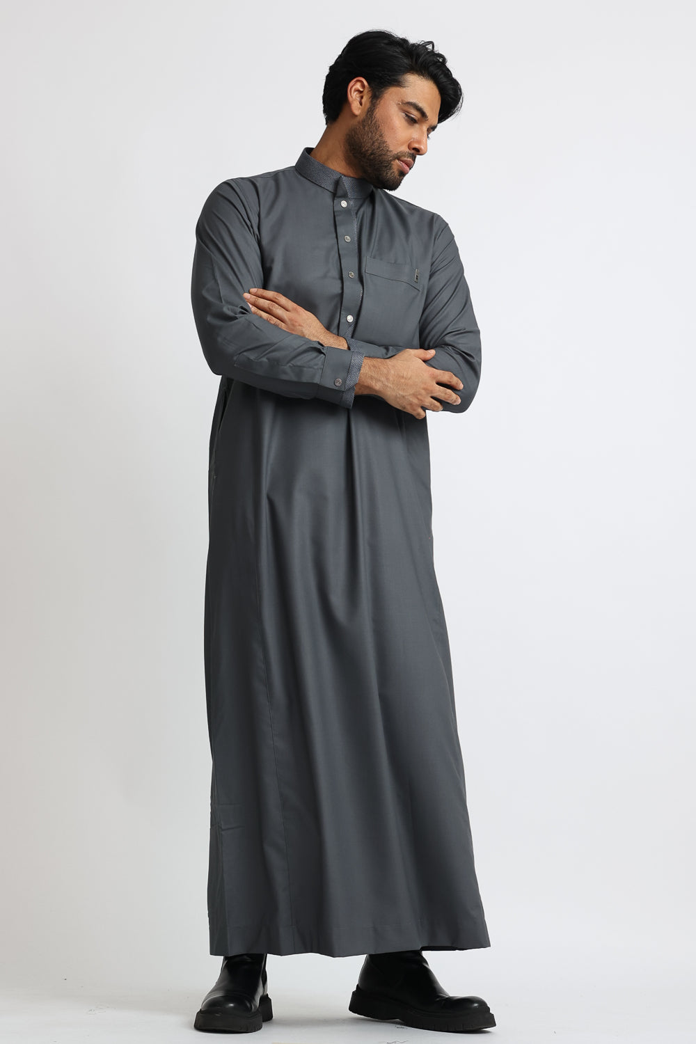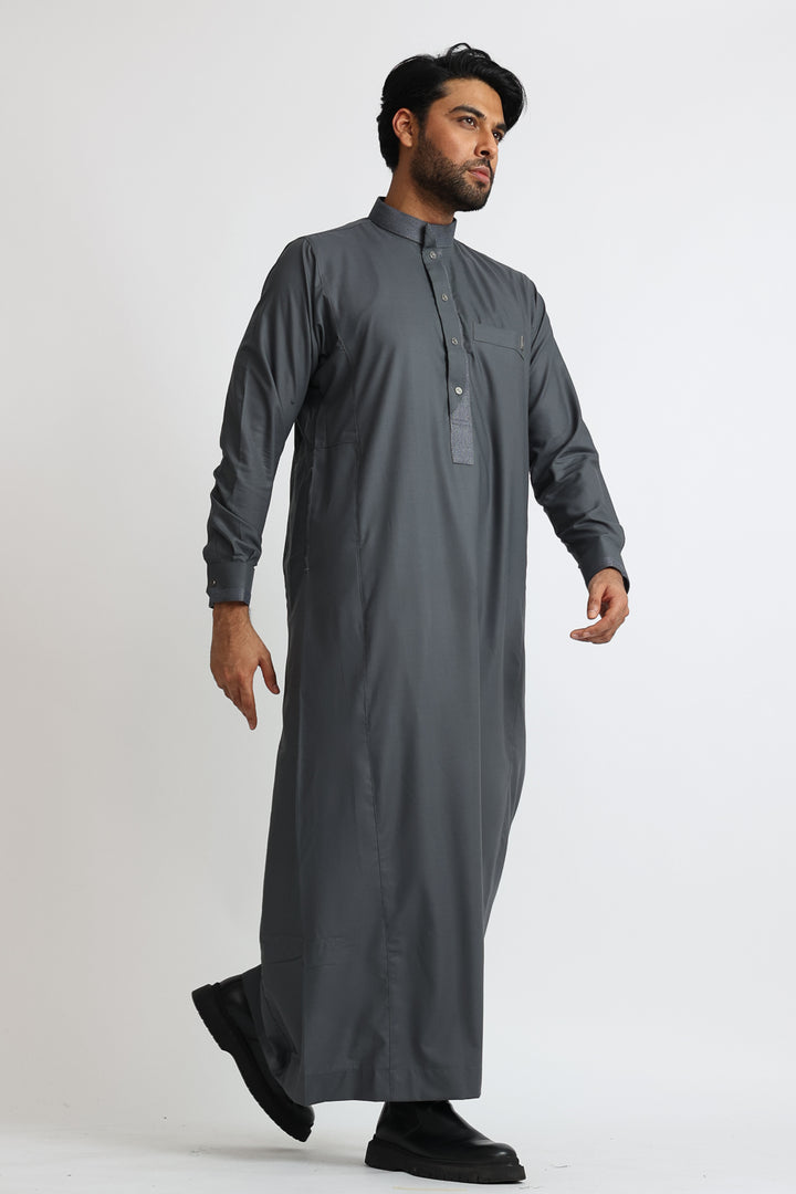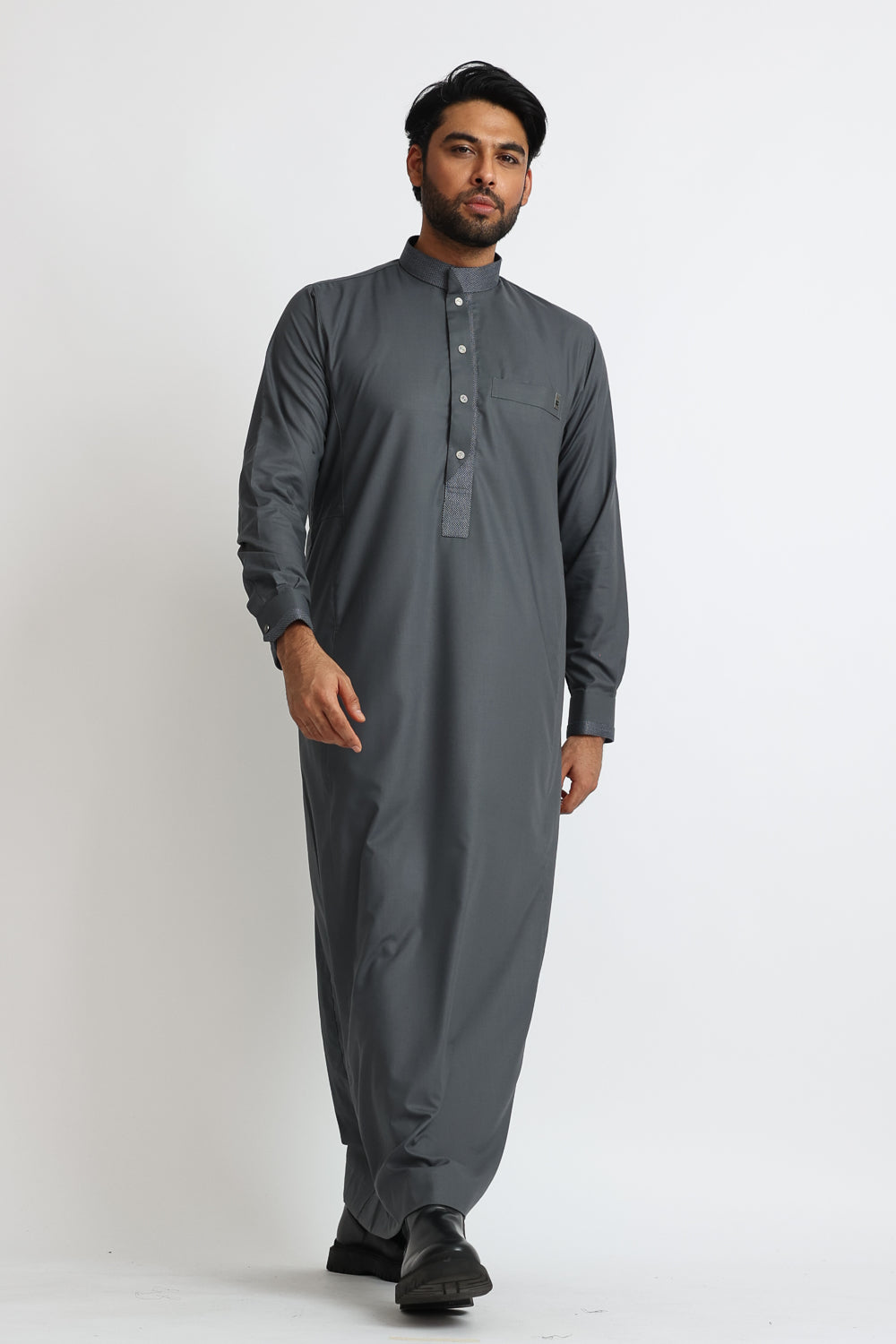 This Carbon Grey Thobe is designed with a perfect blend of modern and traditional aesthetics, making it an ideal outfit for various occasions.