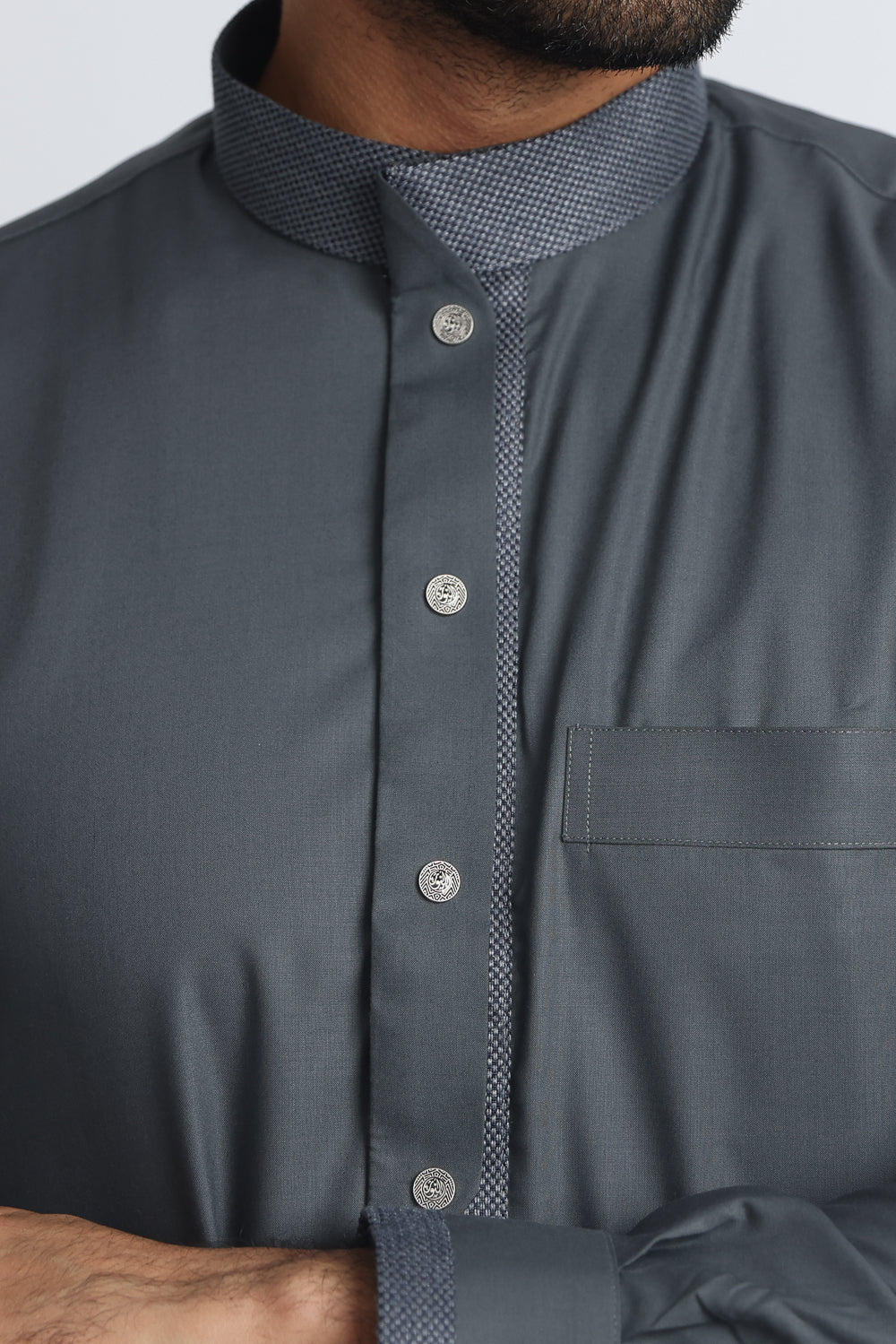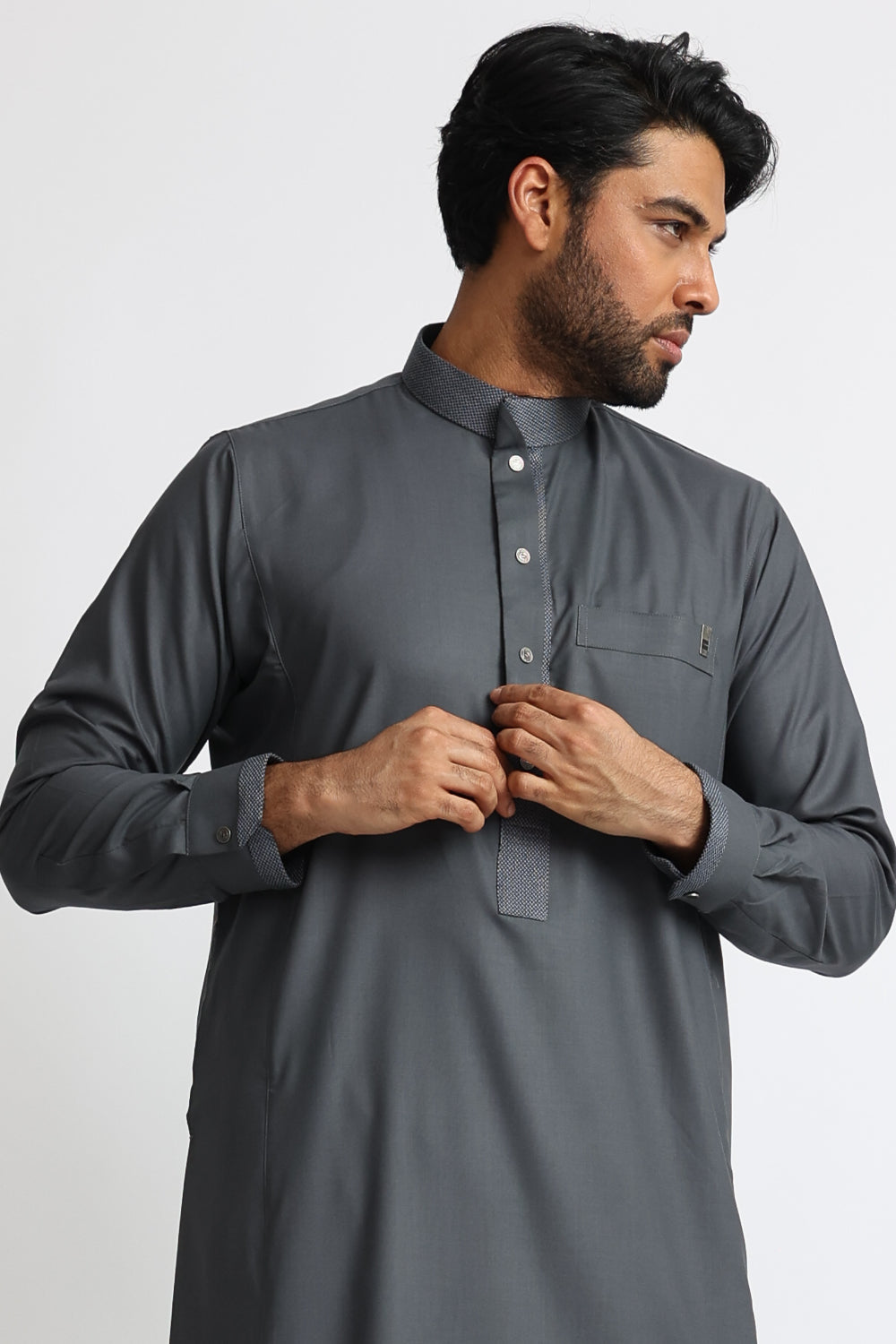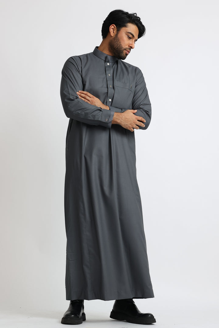 This Carbon Grey Thobe is designed with a perfect blend of modern and traditional aesthetics, making it an ideal outfit for various occasions.