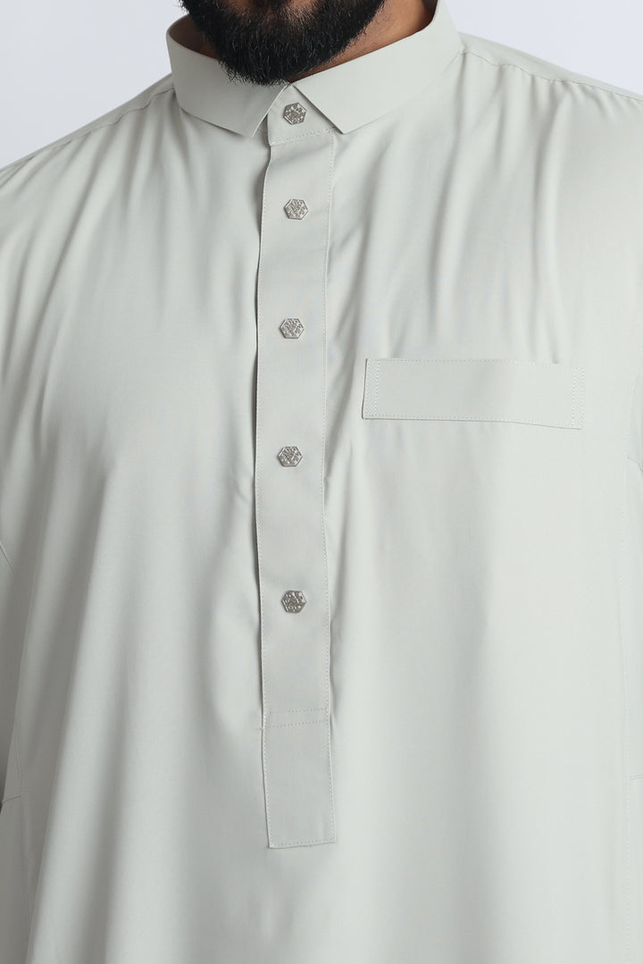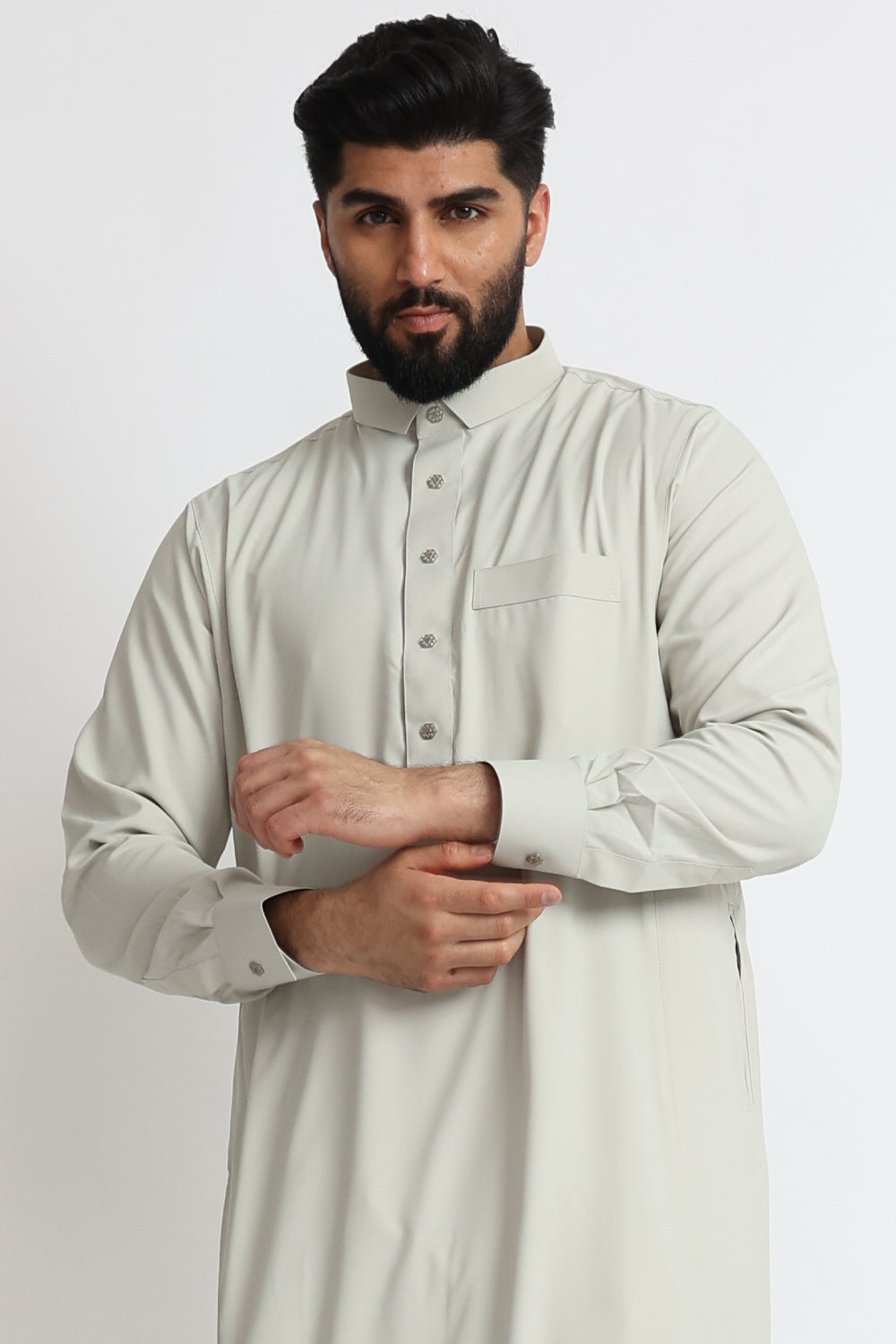 - Foggy Grey Tuxedo Thobe by Al Noor