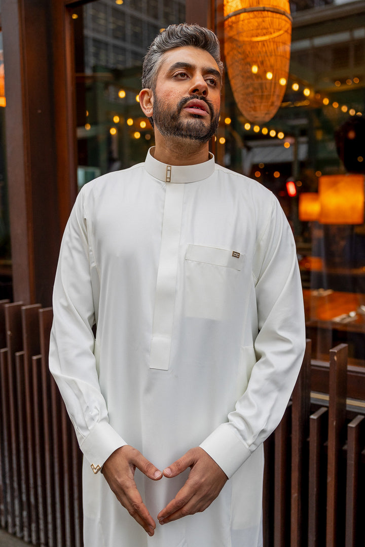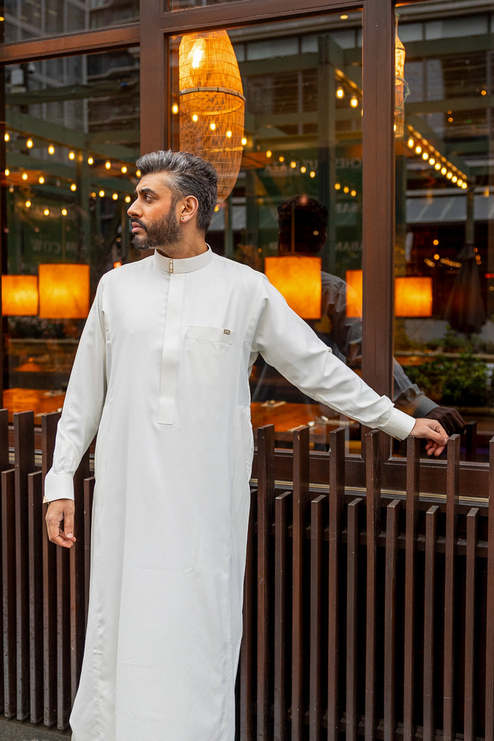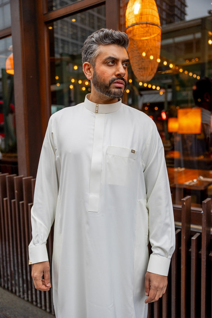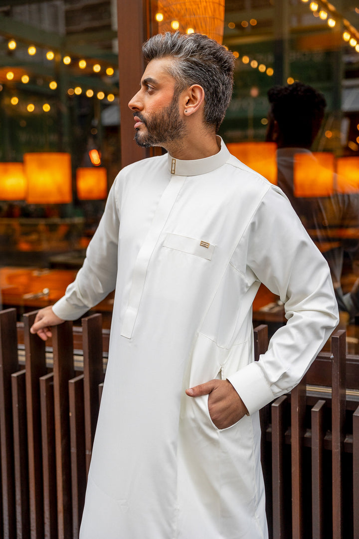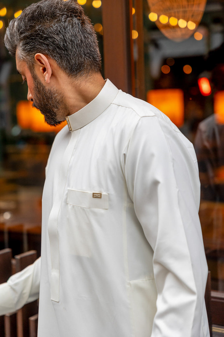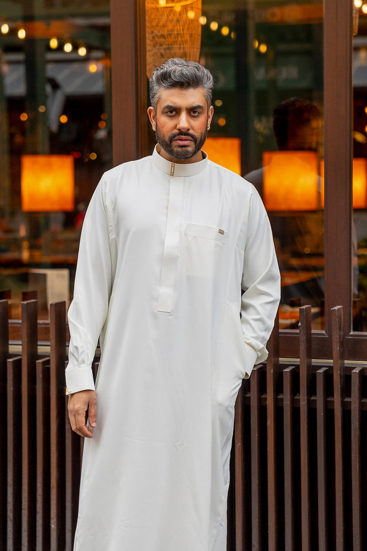 This Cream Thobe with a fine fabric is the perfect addition to any formal occasion. Made from premium quality fabric, this thobe is both durable and stylish.