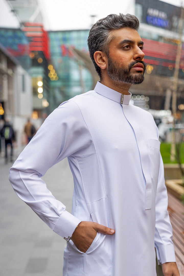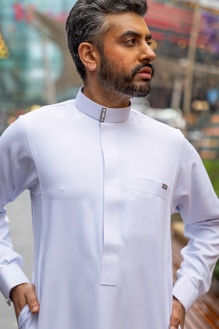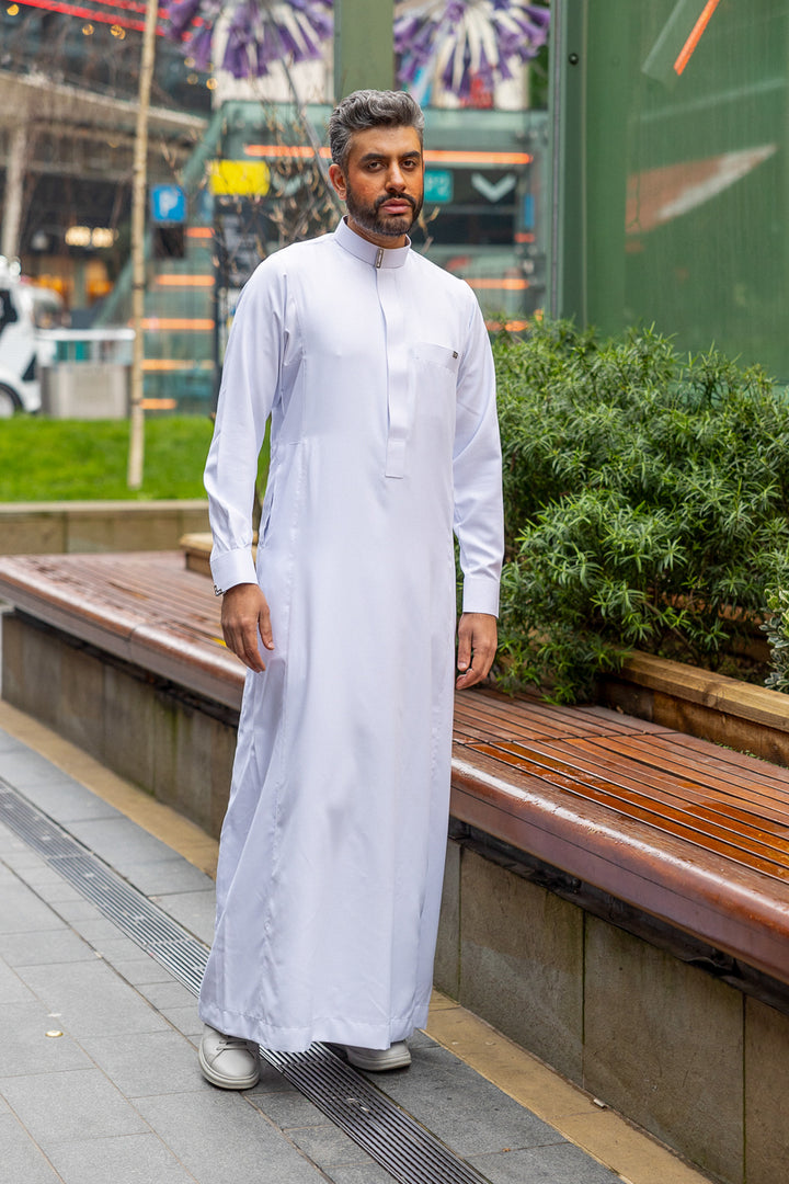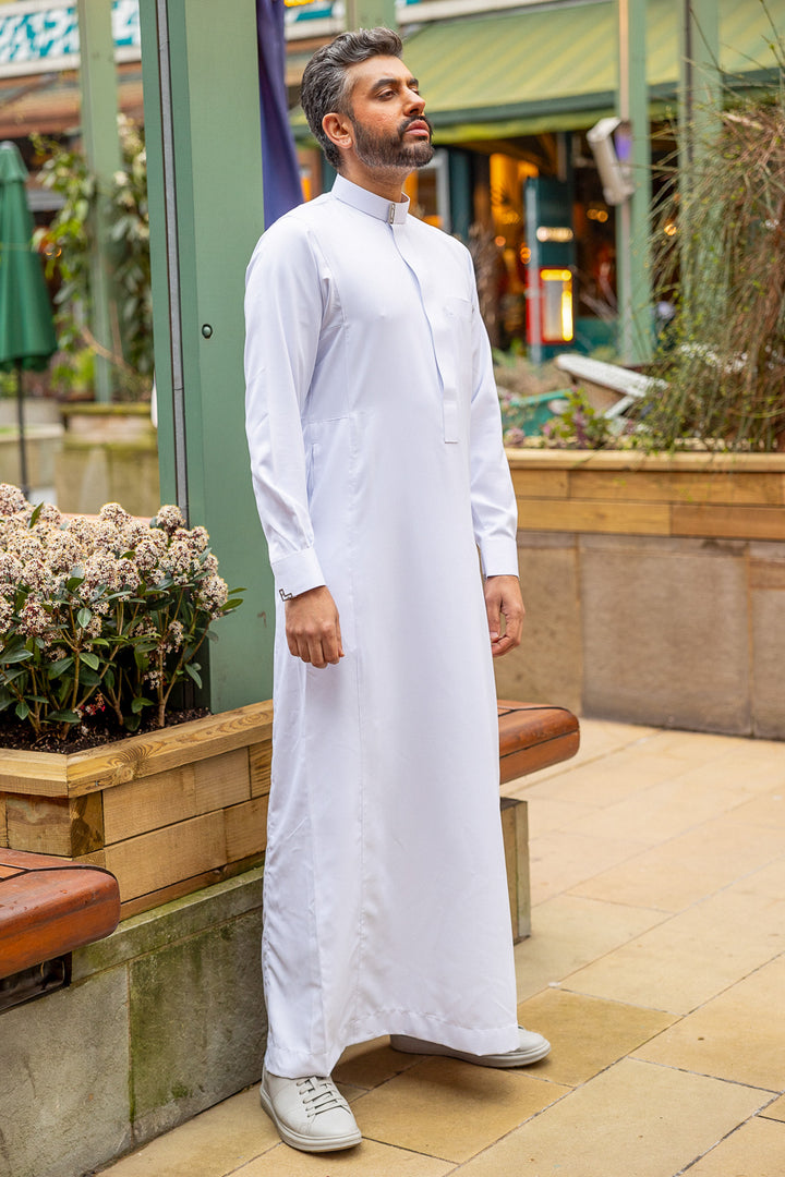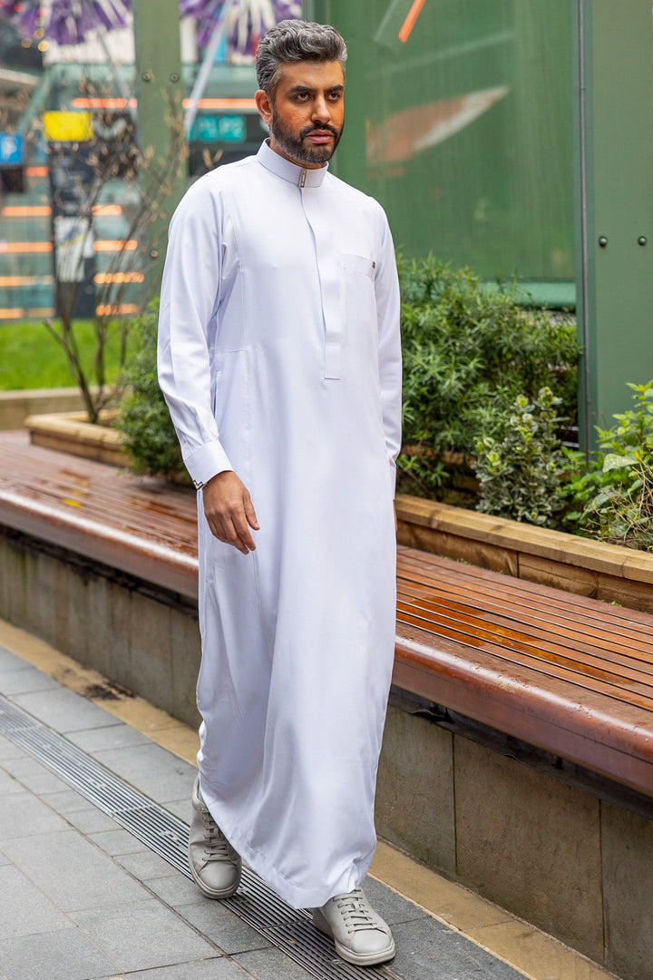 This White Thobe with a fine fabric is the perfect addition to any formal occasion. Made from premium quality fabric, this thobe is both durable and stylish.