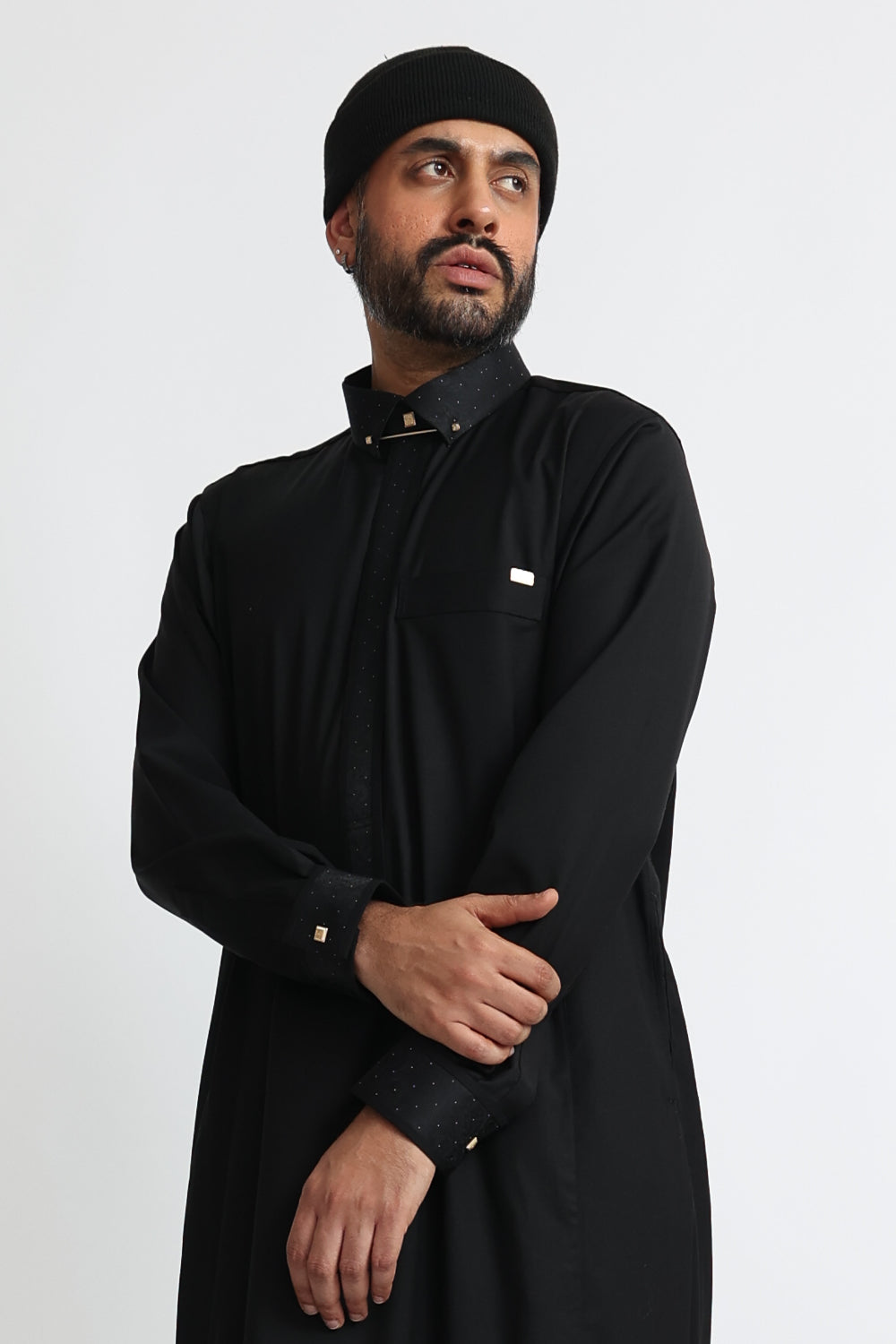 - There's also a left chest pocket, adding functionality to this stylish thobe.