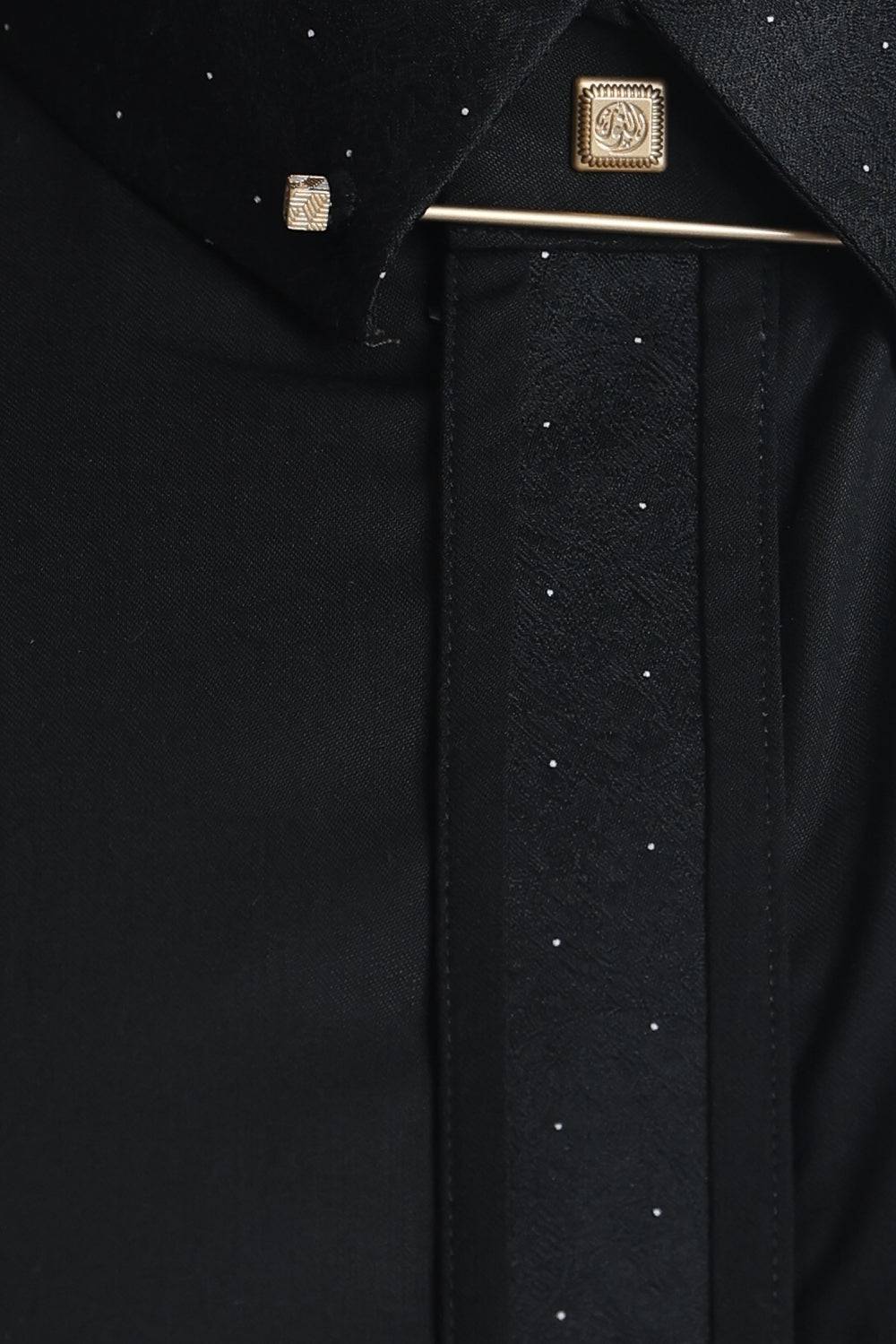 - The printed paisley fabric on the front, cuff and collar add a touch of sophistication to this traditional garment.