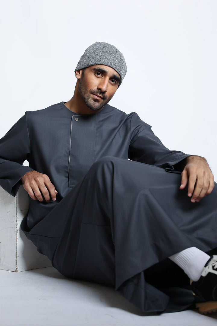 Al Noor Thobe | Fossil Grey Piping Thobe