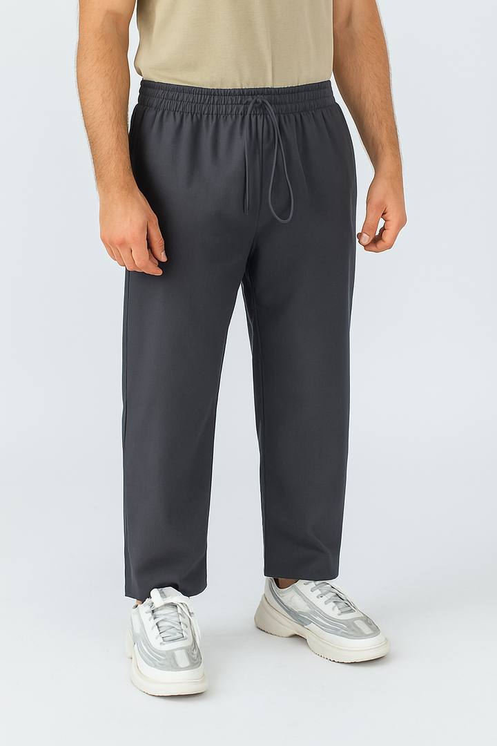Mens Comfy Charcoal Grey Trousers with Elastic Waist & Zip Pocket