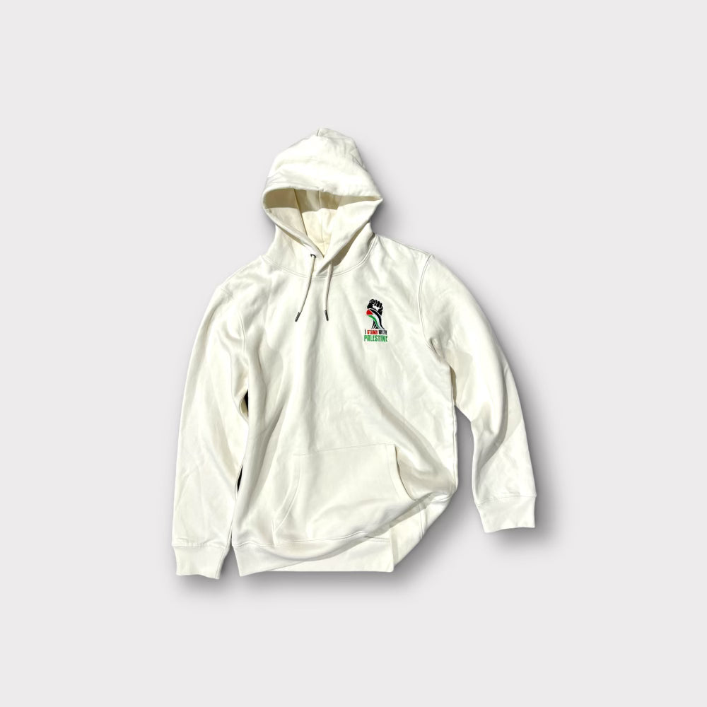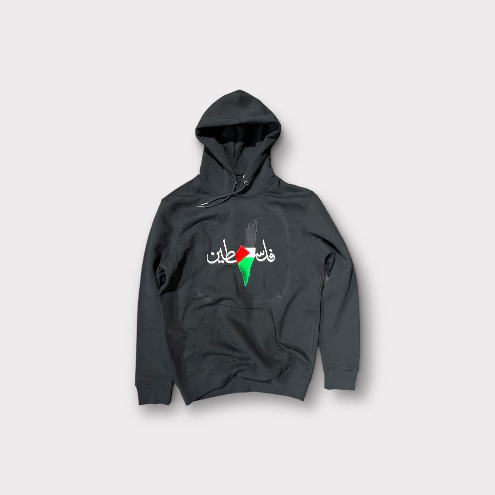 Palestinian Hoodie Introducing the Palestine Hoodie, a stylish and sophisticated way to support a cause. Our luxurious hoodies come in two subtle yet striking colors - black and beige - featuring a combination of embroidered Arabic calligraphy and hand-crafted Palestinian flags, perfect for expressing your solidarity. Elevate your wardrobe and show your support with Palestine Hoodie.