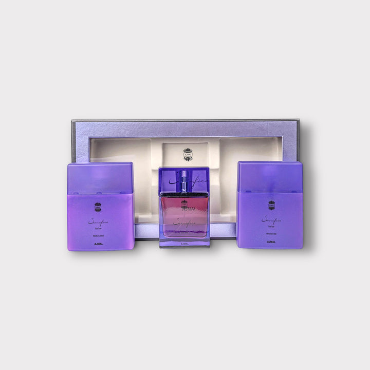 Enhance the intensity of your favourite fragrance. Ajmal Sacrifice for Her fragrance gift set for women contains a perfume along with nourishing cosmetic products which prolong your sensory experience.