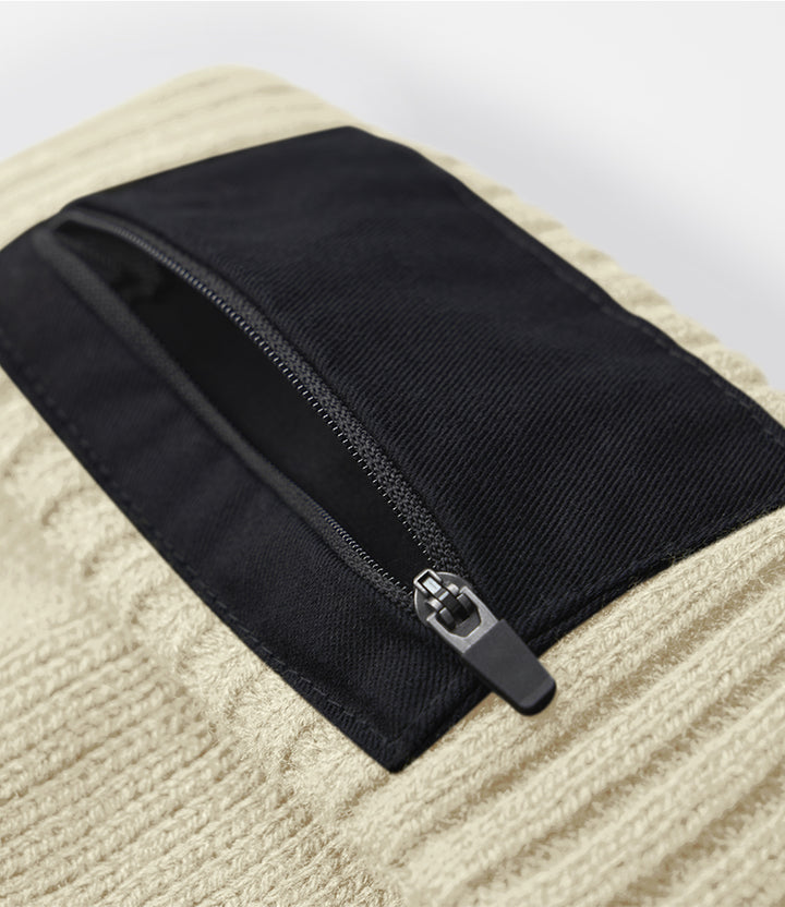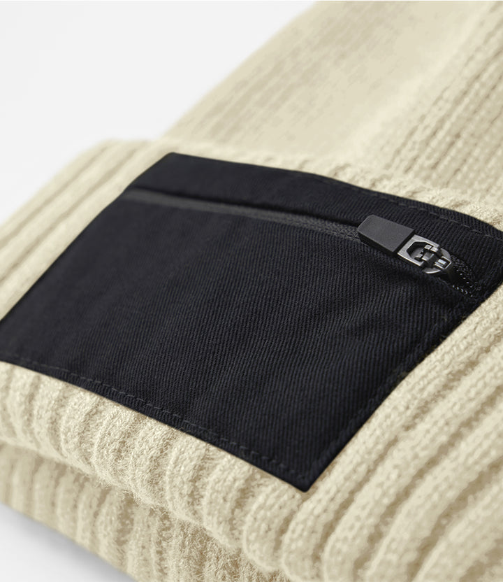 Sand Black Zip Patch Beanie