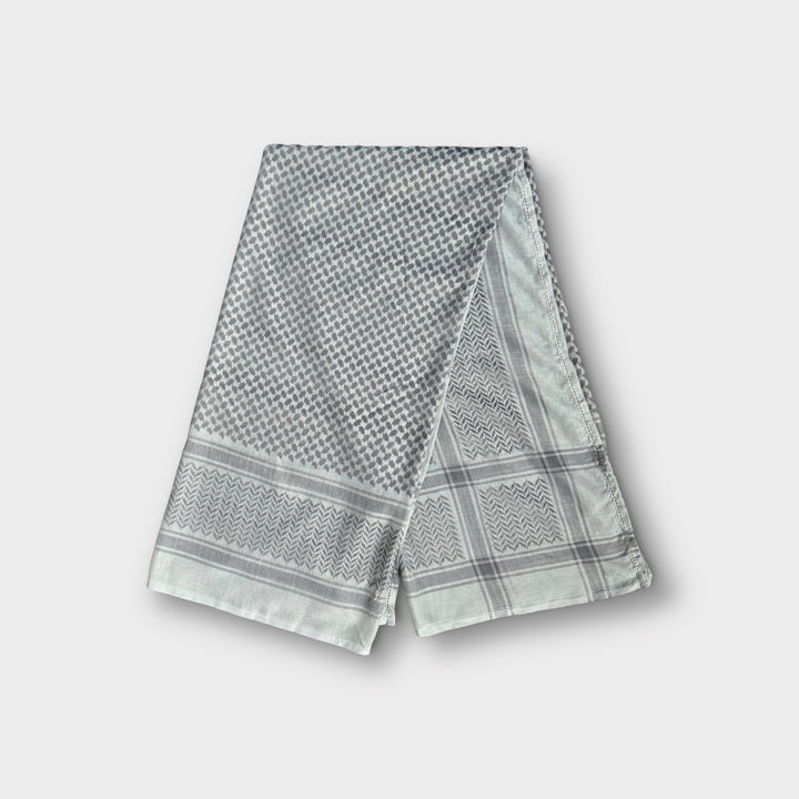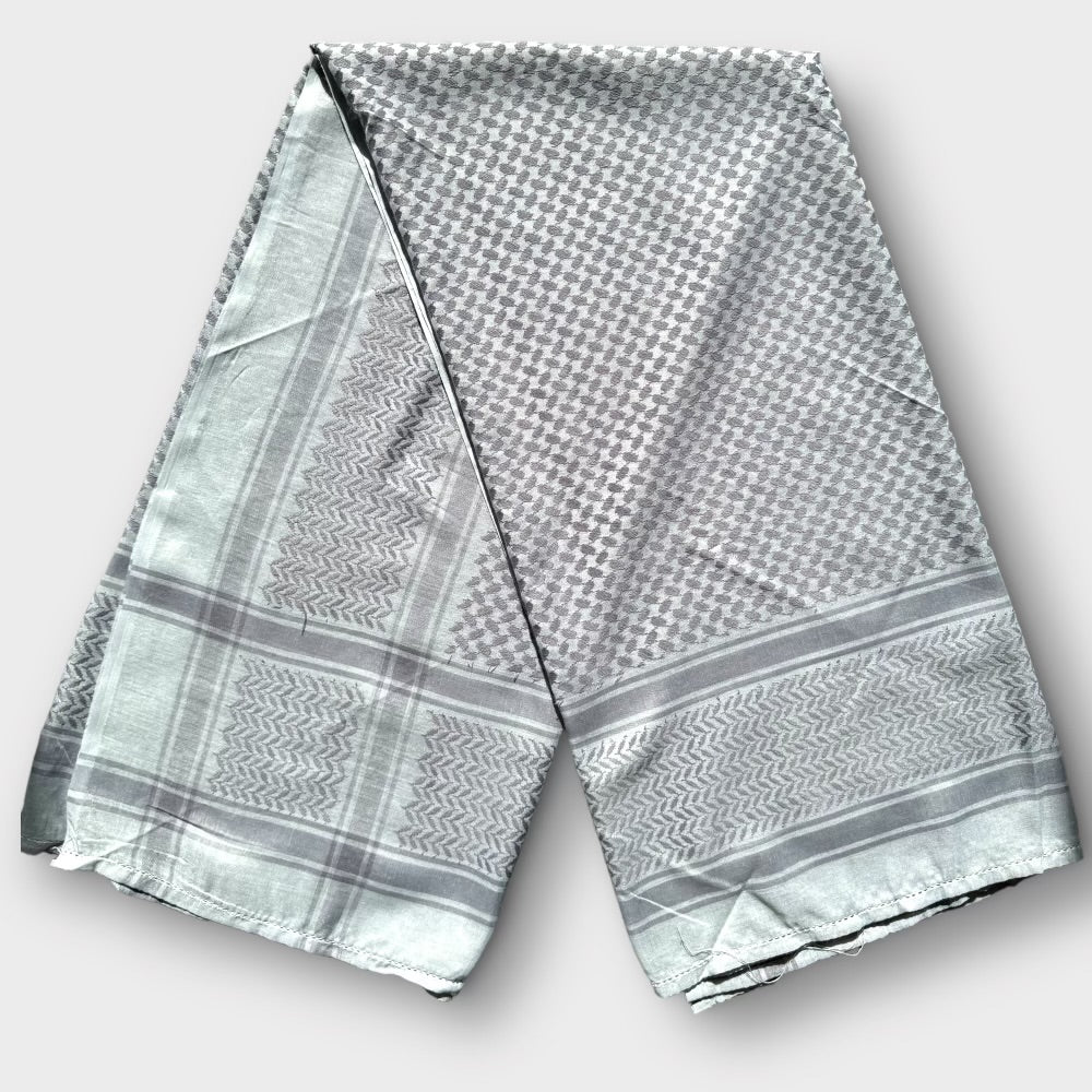 The Shemagh headscarf, also known as a Kufiyya or Ghutrah, is a traditional headdress primarily worn by men. Crafted from lightweight Polyester and an extra-long, square-shaped design, it can be used to protect the head, face and neck from sun, wind, and sand. Highly versatile, it can also be used as a scarf, turban, face covering, or makeshift towel.