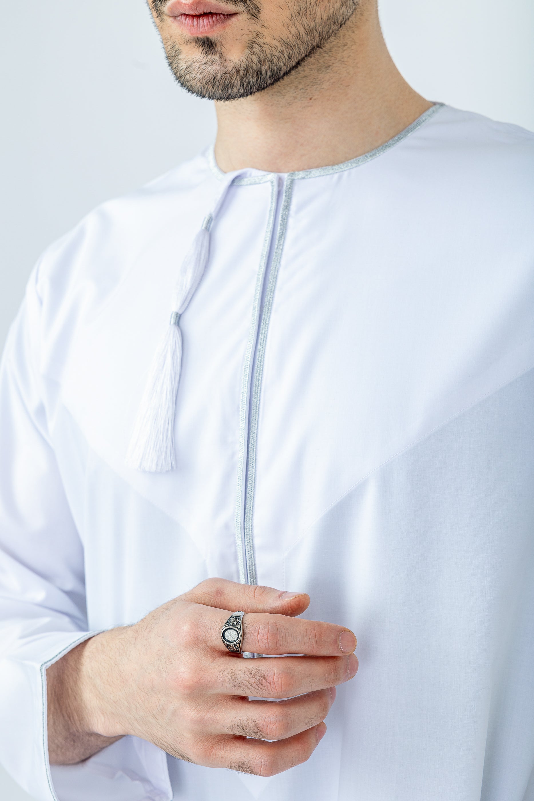 White|Silver Habeel Thobe