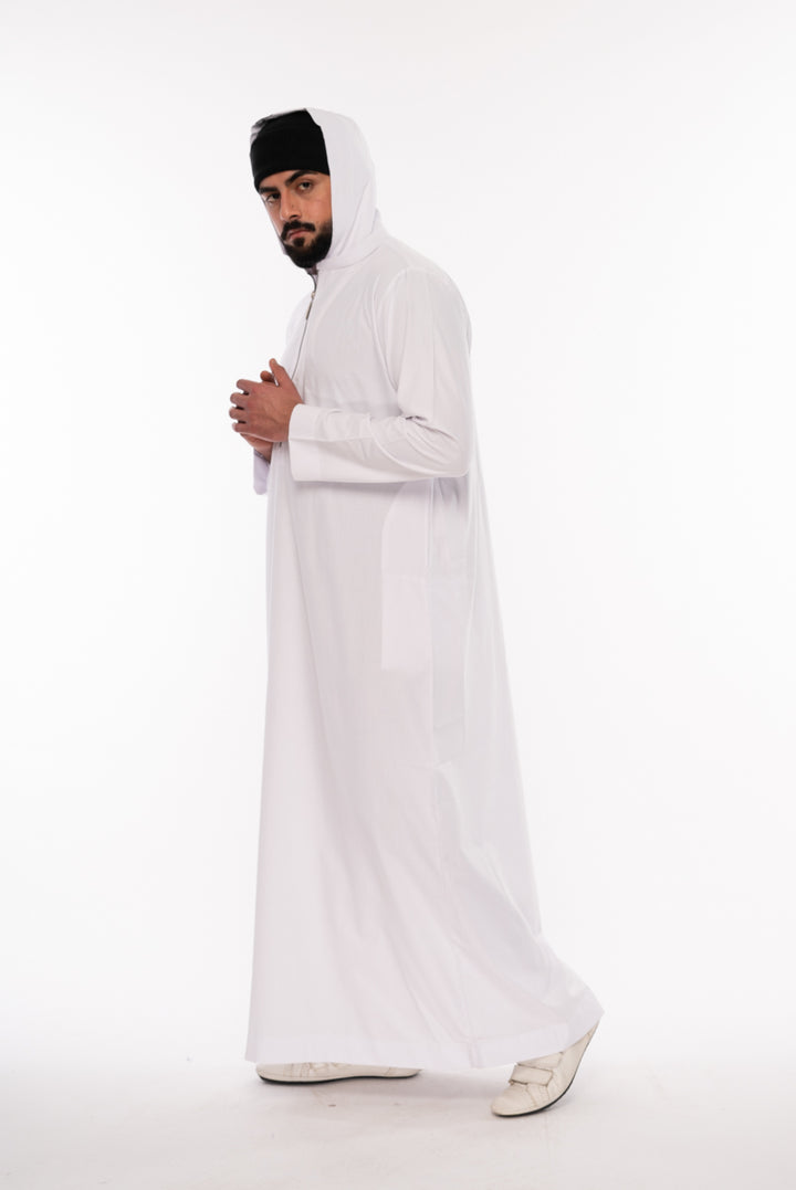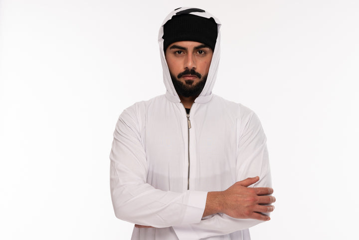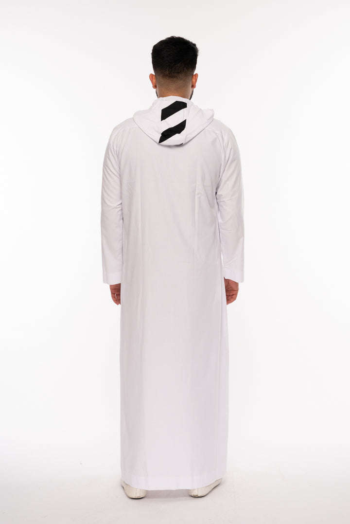- Plain Black Thobe with monochrome pattern on Hood inspired by OFF WHITE